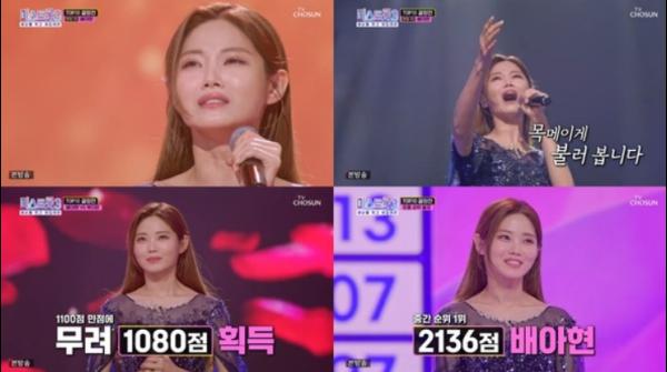 배아현은 "민족의 한이 정말 많이 남긴 노래다. 이 한을 어떻게 풀어나가면 좋을까 고민이 많았다"며 "1차전 1등이니 끝까지 열심히 해서 그 자리 놓치지 않겠다"고 각오를 다졌다.