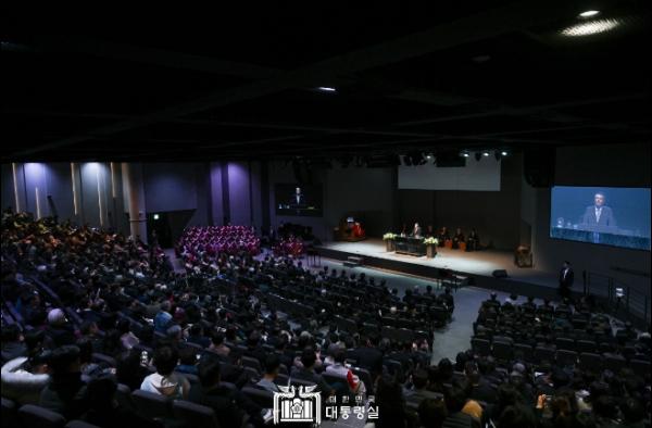 오늘 예배는 원천침례교회 김장환 원로목사, 김요셉 담임목사를 비롯한 성도 800여 명과, 대통령실 황상무 시민사회수석 등 참모진이 참석했다.