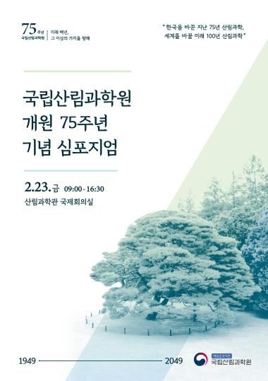 산림청 국립산림과학원(원장 배재수)은 개원 75주년을 맞아 23일, ‘한국을 바꾼 75년 산림과학, 세계를 바꿀 미래 100년 산림과학’을 주제로 심포지엄을 개최했다.