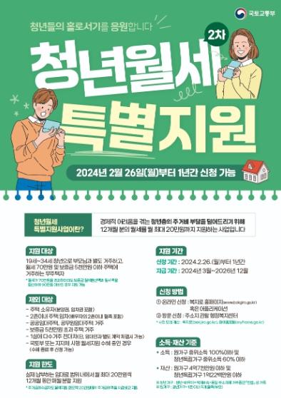 이번 사업은 26일부터 2025년 2월 25일까지 1년간 모집하며, 지원 대상에게는 월 최대 20만원씩 12개월 동안 최대 240만원의 월세를 지원할 계획이다.