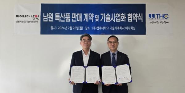 지난 2월 26일 남원시농업기술센터(소장 고인배)는 전주대학교 기술지주회사(대표이사 김상진)와 상호 간의 역량 강화와 발전을 위해 유기적 산학협력 관계 구축을 통한 기술사업화 협약을 체결했다.