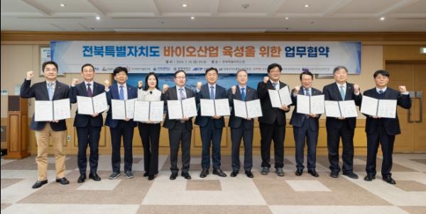 익산시는 26일 전북특별자치도청에서 전북 바이오 특화단지와 연계한 공동 협력을 약속하는 업무협약을 체결했다.