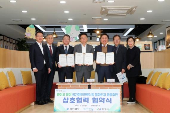안동시은 26일 경북도, 포항시와 도청 안민관 K창에서 '바이오 국가첨단전략산업 특화단지' 공모사업 공동 신청을 위한 협약을 맺었다.
