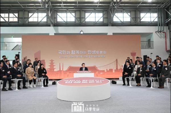 윤석열 대통령은 2월 26일 오후 충남 서산비행장에서 ‘미래산업으로 민생 활력 넘치는 충남’을 주제로 열다섯 번째 ?국민과 함께하는 민생토론회?를 개최하여 충남이 미래산업으로 새롭게 도약하기 위한 방안들을 논의했다.