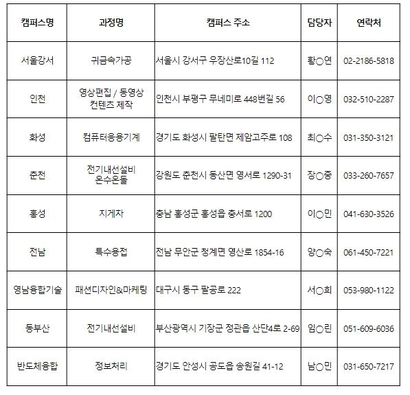 다문화 청년 특화교육 모집에 관해서는 캠퍼스별 담당자(참고1)에게 문의하면 보다 상세한 정보를 제공받을 수 있다.