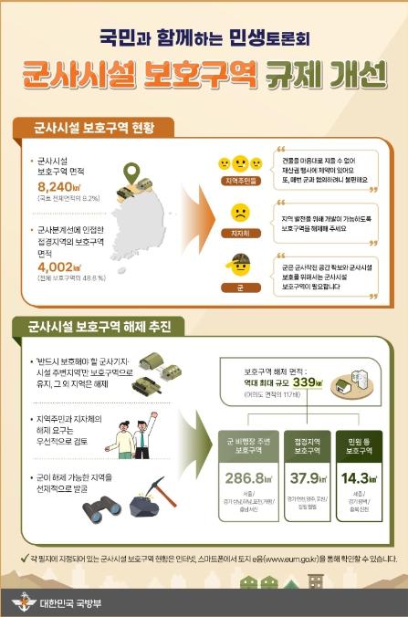 향후에도 국방부는 보호구역 제도의 큰 틀을 유지하되, 군·지자체·주민 간 적극적인 소통을 통해 국민 불편이 최소화될 수 있도록 보호구역 해제·완화를 적극적으로 추진할 것이라고 전했다.