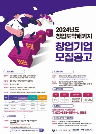 인천테크노파크(인천TP)는 다음 달 19일까지 ‘2024년 창업도약패키지 지원사업’의 참가기업을 20개 사 안팎으로 모집한다고 27일 밝혔다.