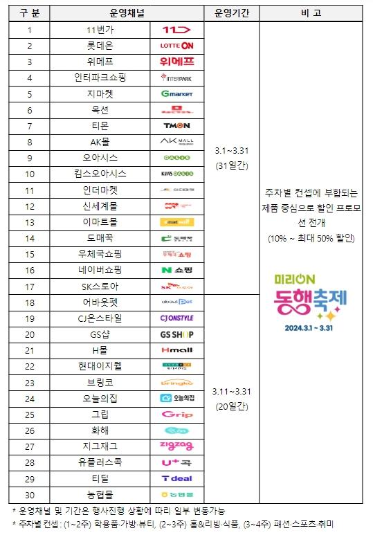 중소벤처기업부는 초봄 시즌 소비진작과 내수 활성화 분위기 조성을 위해 3월 1일부터 31일까지 한 달간 새봄맞이 ‘미리 온(ON) 동행축제’를 개최한다고 밝혔다.