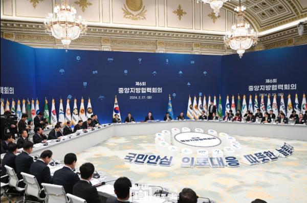 회의는 ▲실무협의회 논의 경과보고 ▲의과대학 입학정원 확대 발표에 따른 의사 집단행동 대응 현황 및 계획(복지부) ▲2024년 초등학교 1학년부터 전면 도입되는 늘봄학교 교육협력 방안(교육부) 보고에 이어 ▲안건별 종합토론으로 진행됐다.