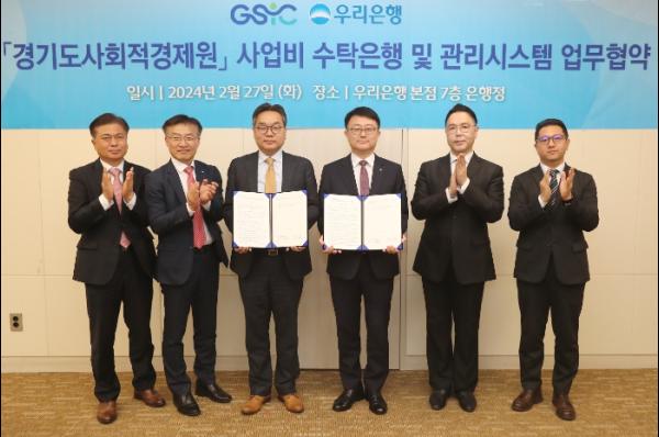 경기도사회적경제원은 우리은행과 ‘사업비 수탁은행 및 관리시스템 업무 협약’을 27일 체결했다.