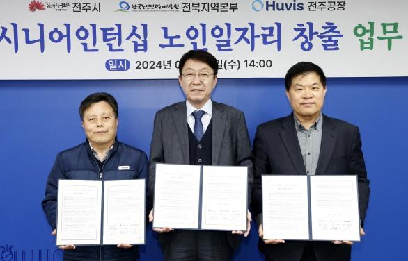 전주시와 한국노인인력개발원 전북지역본부, ㈜휴비스 전주공장이 노인일자리 창출을 위해 힘을 모으기로 했다.