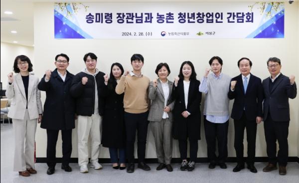 간담회에 참여한 청년창업가는 △지역 자원을 활용한 청년활동 지원 확대 △농업분야 청년창업 지원 조건 완화 △지역정착 초기, 거주 지원 확대 등 정부 차원의 관심과 지원을 요청했고 송미령 장관은 농촌지역 활성화를 위해 단계별, 부문별 지원을 마련하겠다고 말했다.