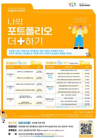 ▲역량 강화 더하기 ▲경험 더하기 ▲실습 프로젝트로 진행하는 본 과정은 제작부터 실전까지의 포트폴리오 구성 전반을 다루며, 19세 이상 39세 이하 관내 청년이면 누구나 4일부터 QR코드를 통해 신청할 수 있다.