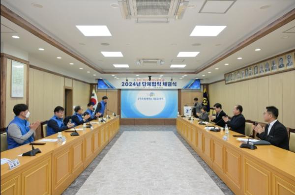 영덕군과 영덕군공무원노동조합은 지난 4일 군청 제1회의실에서 노사 양측 교섭위원 11명이 참석한 가운데 단체협약 체결식을 개최했다.