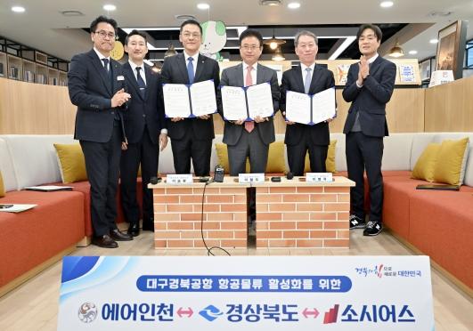경상북도와 에어인천, 소시어스는 경상북도 항공물류 활성화 및 관련 사업 발굴, 대구경북공항 화물터미널 활성화, 대구경북공항 화물터미널에 에어인천 입주, 상호기관 정보 공유 및 홍보 활동에 협력하기로 협약을 맺었다.