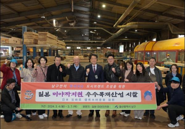 울산 남구는 남구만의 특색 있는 도시브랜드 조성으로 더 큰 남구로의 행복한 변화에 가속도를 내기 위해 주요정책 분야 공무원 등과 함께 일본 미야자키현으로 목재산업 시찰을 추진한다고 밝혔다.
