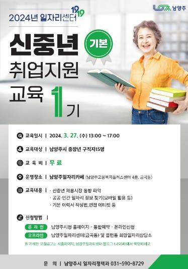 남양주시는 오는 3월 27일 중장년 구직자를 대상으로‘신중년 취업 지원 교육(기본) 1기’를 운영한다.