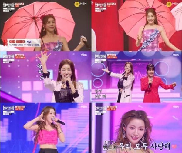 두리는 특유의 간드러진 음색과 시원한 가창력으로 화요일 밤을 흥으로 물들였다. 우산을 이용한 안무와 한 편의 뮤지컬 같은 스토리가 있는 무대 구성으로 풍성한 볼거리를 선사했다.