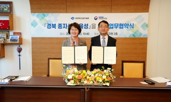 경상북도농업기술원은 지난 6일 국립종자원(김천시 소재)에서 국립종자원과 K-종자 신품종 개발 및 보급 확산을 위해 ‘경북 종자산업 육성을 위한 업무협력’을 위한 양해각서를 체결했다.