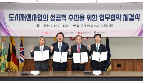 부산 사상구는 2024년 국토교통부 주관 도시재생 공모사업(지역특화재생형)의 성공적 추진을 위해 지역대학인 동서대, 경남정보대, 부산디지털대와 업무협약을 체결했다고 6일 밝혔다.
