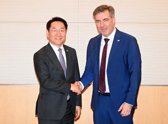 유정복 인천광역시장이 3월 6일 여의도 전경련회관에서 라스 아가드(Lars Aagaard) 덴마크 기후에너지유틸리티부 장관과 페어 마이너 크리스텐센 (Per Mejnert Kristensen) 오스테드 아시아·태평양 대표 일행과 접견했다.
