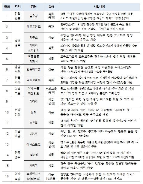이를 통해 ‘지역’과 ‘고유함’을 바탕으로 식품, 상품, 콘텐츠, 공간 등 다양한 분야의 62종의 시제품·서비스 개발이 완료해 현재까지 총 11억의 매출을 올렸다고 시는 덧붙였다.