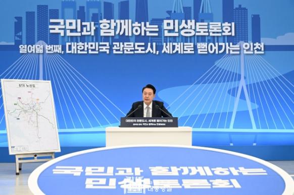 대통령은 민생토론회에 이어 인천 송도컨벤시아에서 ‘국민과 함께하는 민생철도 GTX’를 슬로건으로 개최된 GTX B노선 착공 기념식에 참석했다.