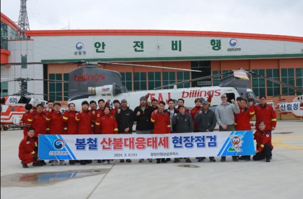 고기연 산림항공본부장은 6일 산림청 함양산림항공관리소(소장 정선옥)를 방문해서 봄철 산불대응태세 점검하고, 국외 임차헬기 운영에 관한 승무원과 대화를 나누며 관리소 직원들과 소통의 시간을 가졌다.