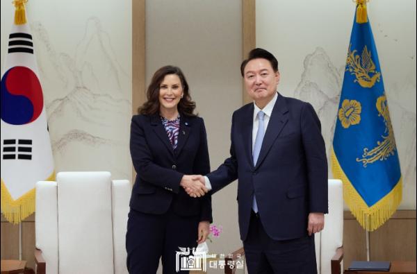 윤석열 대통령은 3월 7일 오후 방한 중인 '그레첸 위트머(Gretchen Whitmer)' 미국 미시간 주지사를 접견하고, 우리나라와 미시간州 간 협력 방안, 우리 진출 기업과 한인 사회에 대한 지원 등에 관해 의견을 교환했다.