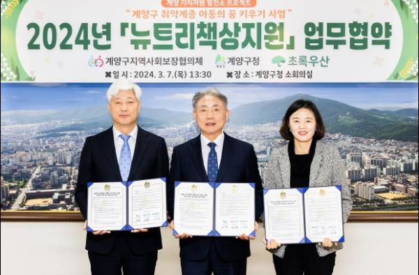 인천광역시 계양구는 지난 7일 계양구청 소회의실에서 계양구지역사회보장협의체, 초록우산어린이재단 인천지역본부와 함께 취약계층 아동 지원을 위한 ‘뉴트리 책상 지원’ 업무협약을 체결했다고 밝혔다.
