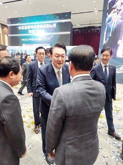 백경현 구리시장은 지난 7일 인천 연수구 송도국제도시 컨벤시아에서 열린 수도권 광역급행철도(GTX) B노선 착공 기념식에 참석해, 윤석열 대통령과의 인사 자리에서 GTX-B 갈매역 정차를 건의했다고 밝혔다.