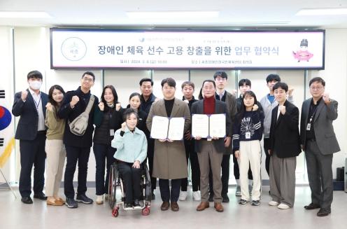 이날 협약식에는 임규모 세종시장애인체육회사무처장, 김태우 세종웰키즈 소아청소년과의원 전무이사를 비롯해 지난해 12월 세종충남대병원과의 장애인 체육선수 고용협약에 힘쓴 김영근 한국장애인고용공단 대전지역본부 본부장 등 관계자들이 참석했다.