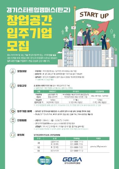 경기도가 우수 새싹기업의 성장과 단계별 지원을 위해 오는 28일까지 ‘판교 스타트업캠퍼스’에 입주할 (예비)창업자를 모집한다.