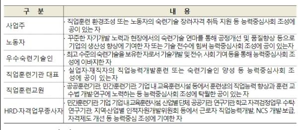 ?직업능력개발 유공 포상?은 전 국민의 평생직업 능력개발 및 능력중심 사회를 구현하기 위해 관련 유공자를 격려하기 위한 것이다.