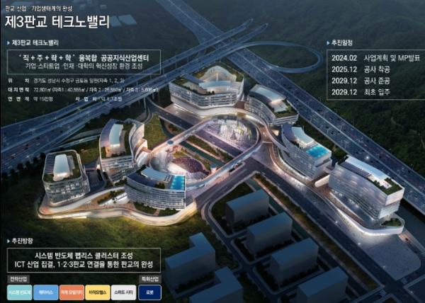 공공기숙사 1,000호 건설, 입주기업을 지원할 제3판교 전용펀드 개설, 제품 상용화를 도울 신개념 테스트베드 ‘스마트링’ 조성 등 혁신성장을 위한 다양한 방안을 기획 중에 있으며, 2025년 착공해 2029년 준공될 예정이다.