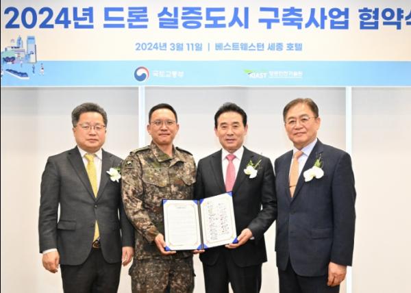 포천시가 국토교통부의 ‘2024 국토부 드론 실증도시 구축사업’ 최종선정에 따른 업무협약을 11일 세종시 베스트웨스턴플러스 호텔에서 체결했다.
