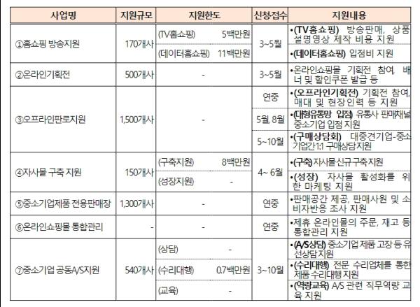 동 사업은 안방 구매(홈쇼핑) 방송을 통해 제품을 판매하길 희망하는 중소기업을 대상으로 티브이(TV)안방 구매(홈쇼핑)과 자료(데이터)안방 구매(홈쇼핑) 입점을 지원하는 사업이다.