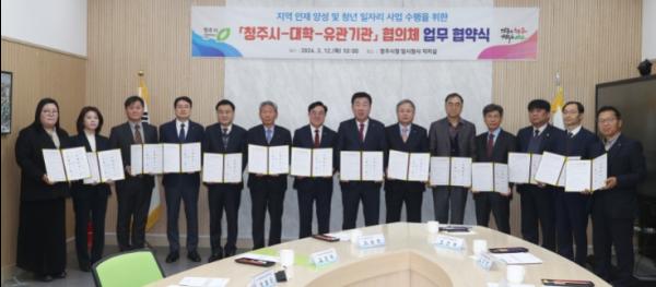 청주시는 12일 임시청사 직지실에서 관내 대학교 8개소·유관기관 5개소와 지역 인재 양성 및 청년 일자리 사업 수행을 위한 업무 협약을 체결했다.