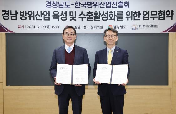 경상남도는 한국방위산업진흥회와 경남 방위산업 육성과 수출 활성화를 위한 업무협약을 체결하고 함께 협력하기로 했다.