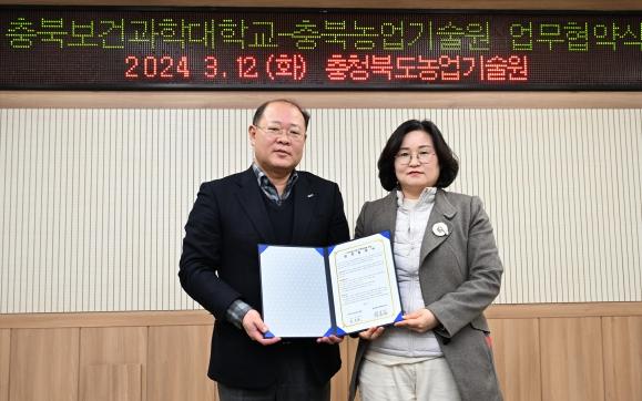충북농업기술원은 충북보건과학대학교과 3월 12일 농업기술원에서 『스마트팜 전문 인력양성을 위한 업무협약』을 체결했다.