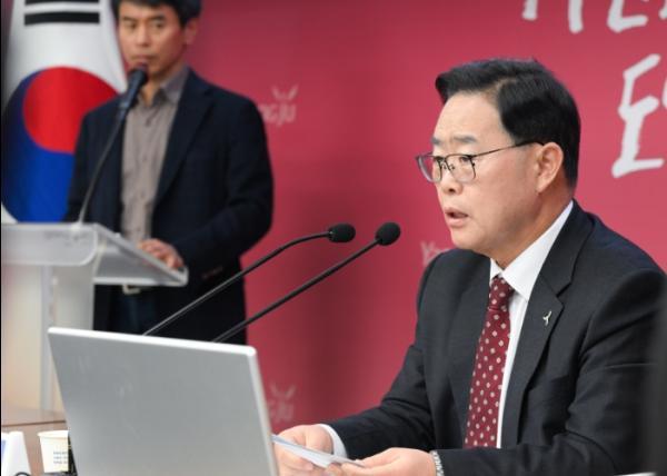 강수현 양주시장이 지난 13일 오전 양주시 복지문화국장, 교육체육과장 등 시민교육 관련 간부 공무원 및 용역 연구기관 관계자 등 20여 명과 함께 ‘2023년 경기도 정책연구 최종보고회’에 참석했다.