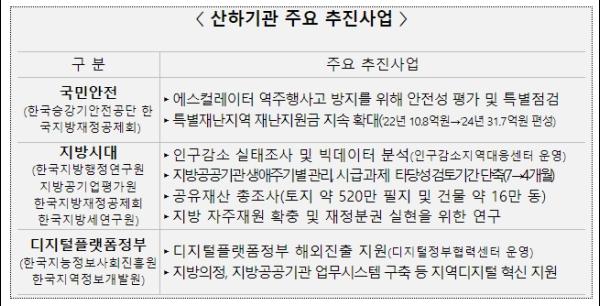 특히, ?국민안전, ?지방시대, ?디지털플랫폼정부 구현 등 3개 분야의 정책들이 차질 없이 진행될 수 있도록 주요 사업을 적극 추진할 계획이다.