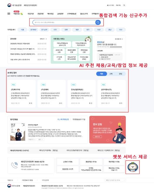 중·장기복무 제대군인들에게 취·창업 관련 각종 정보와 취업추천, 교육훈련 등을 체계적으로 지원하기 위한 제대군인 전직지원시스템이 인공지능(AI) 기반 시스템으로 고도화되어 15일부터 운영된다.