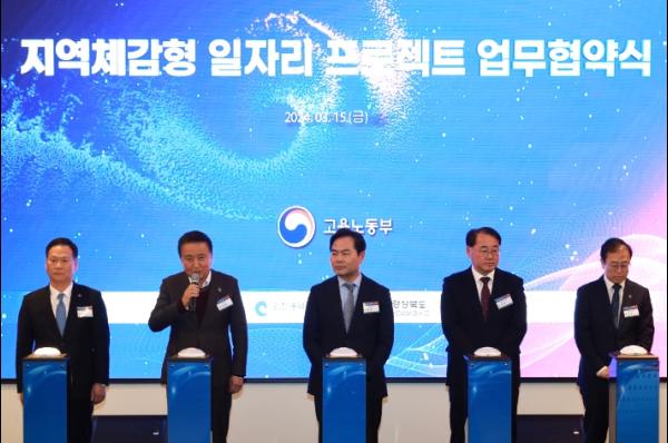 충청북도는 15일 코트야드 바이 메리어트 세종에서 2024년 시범실시하는 『지역체감형 일자리 프로젝트』성공모델 구현을 위하여 고용노동부 주관으로 4개 자치단체와 함께 업무협약을 체결했다.