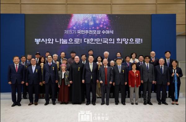대통령은 축하 인사를 통해 ‘국민추천포상’은 국민이 직접 추천하고 국민이 심사에 참여해 수상자를 선정하는 매우 특별한 상이라며, 그 어떤 상보다 의미가 크고 영예로운 상이라고 강조했다. 이어 정부도 ‘약자복지’를 국정운영의 핵심 기조로 삼아 많은 노력을 기울이고 있다면서 사회적 약자를 더 촘촘하고 더 두텁게 챙기고, 더 많은 나눔이 실천되도록 고쳐야 할 제도와 관행들을 적극적으로 개선해 나가겠다고 말했다.