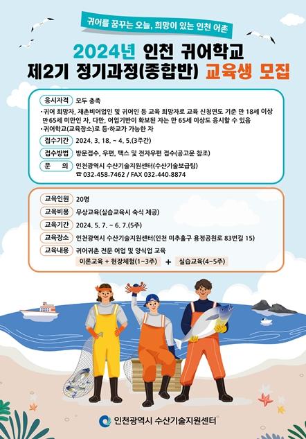 인천광역시 수산기술지원센터는 귀어귀촌 촉진과 어촌소멸 대응을 위해 제2기 귀어학교 교육생을 18일부터 4월 5일까지 3주간 모집한다고 밝혔다.