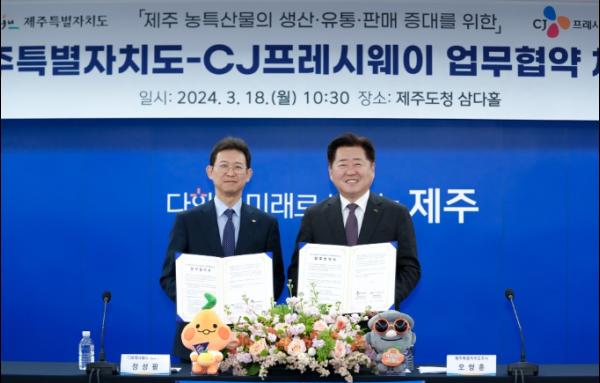이번 협약을 통해 제주도는 CJ프레시웨이의 전국 유통망과 맞춤형 솔루션을 활용해 제주 주요 농산물 및 우수 가공식품에 대한 생산·유통·판매를 확대해 농가소득 증대를 도모한다.