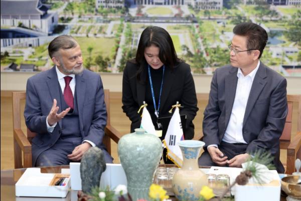 나빌 무니르(Nabeel Munir) 주한 파키스탄 대사 일행이 18일 경상북도-파키스탄 간 우호 교류 관계 확충에 대한 논의를 위해 이철우 경상북도지사를 예방했다.
