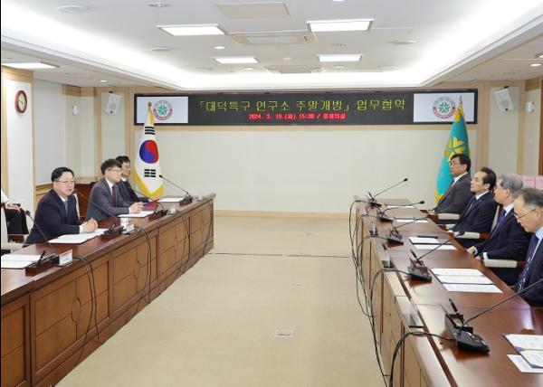 대전시는 19일 국가과학기술연구회(NST)를 비롯한 8개 연구기관 (▲한국천문연구원 ▲한국항공우주연구원 ▲한국과학기술정보연구원 ▲한국원자력연구원 ▲한국타이어앤테크놀로지㈜(한국테크노돔) ▲한국에너지기술연구원 ▲한국한의학연구원 ▲한국기초과학지원연구원)과 함께 ‘대덕특구 연구소 주말개방’ 업무협약을 체결했다.