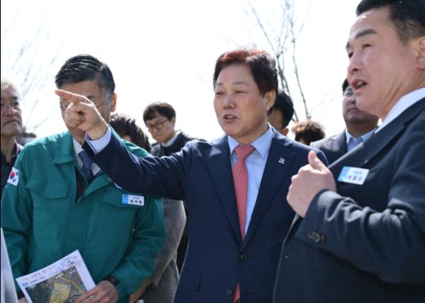 박 지사는 이어서 동부면 산촌간척지를 방문해 ‘한-아세안 국가정원 조성 예정지' 현장점검을 실시했다. 거제시 동부면 산촌간척지 일원에 40.4ha 규모로 국비 1986억 원을 투입해 2030년 개원을 목표로 추진하고 있는 한·아세안 국가정원은 지난해 10월 기획재정부 예비타당성조사 대상사업에 선정됐다.